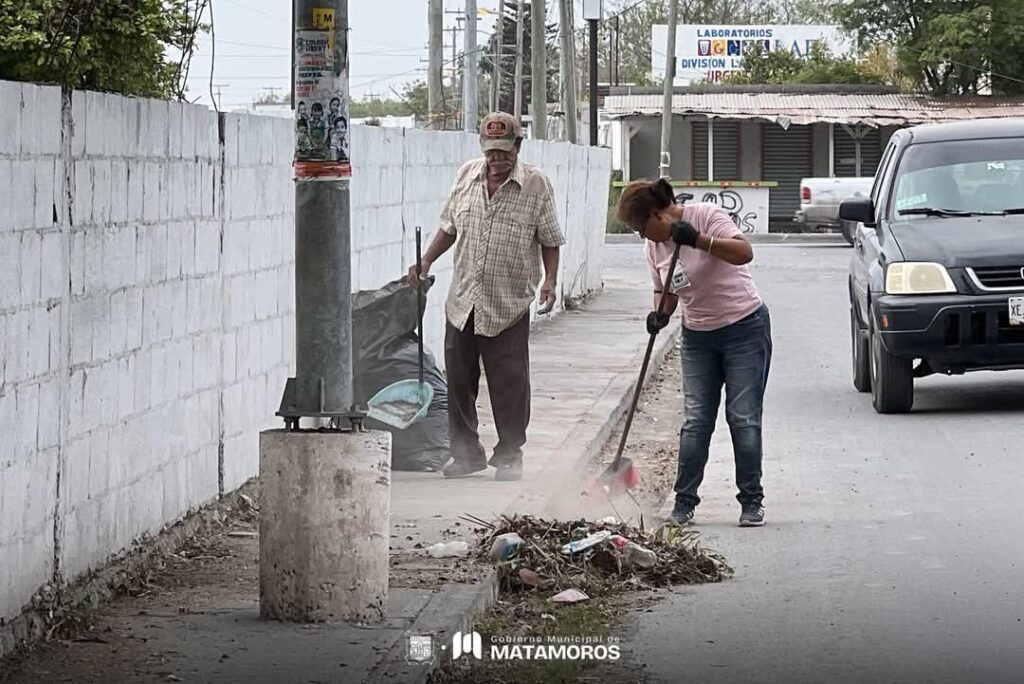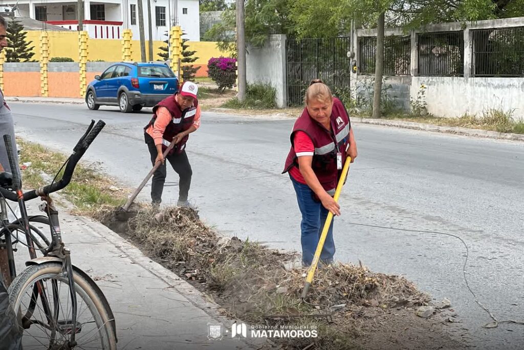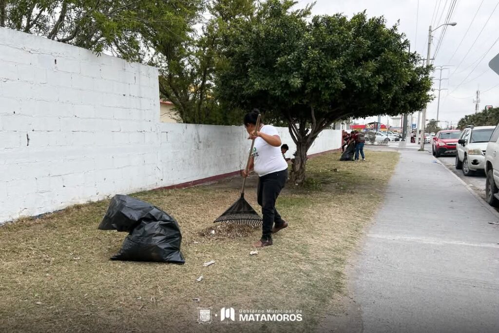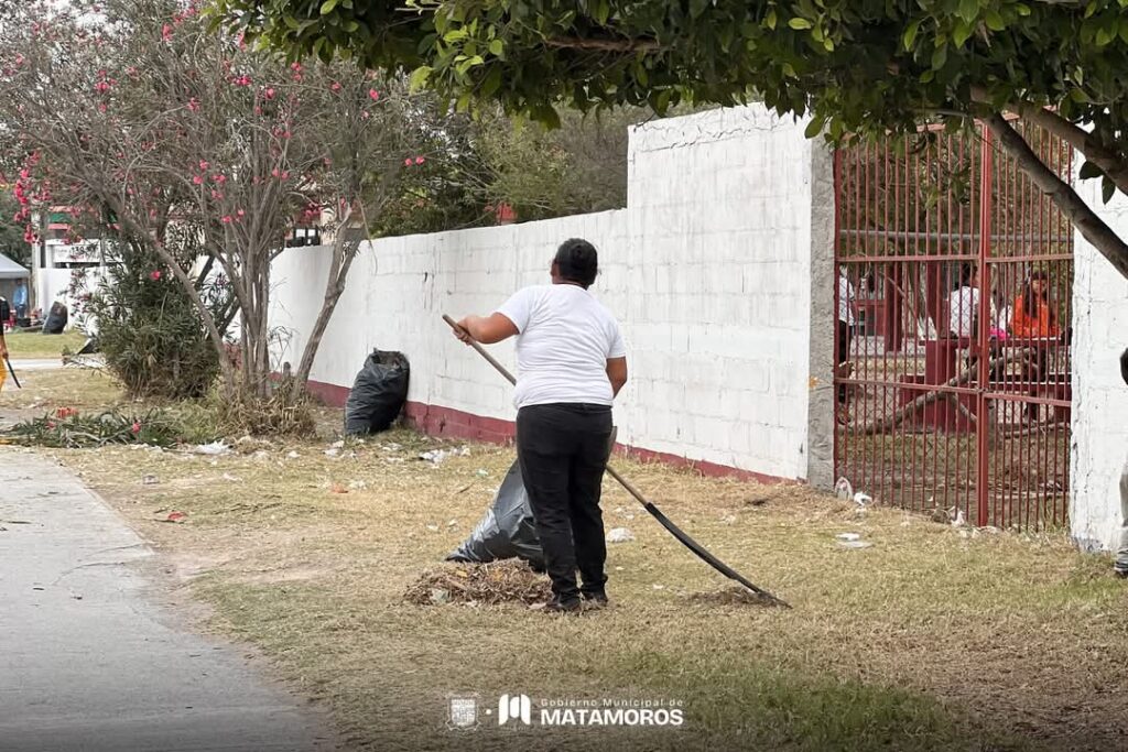 H. Matamoros, Tamaulipas.- Como parte de las acciones para garantizar espacios escolares más saludables y seguros, el equipo de Enlaces de la Dirección de Consejos de Colaboración Vecinal, adscrito a la Secretaría de Bienestar Social, realizó labores de limpieza en la Escuela Primaria José María Cárdenas.