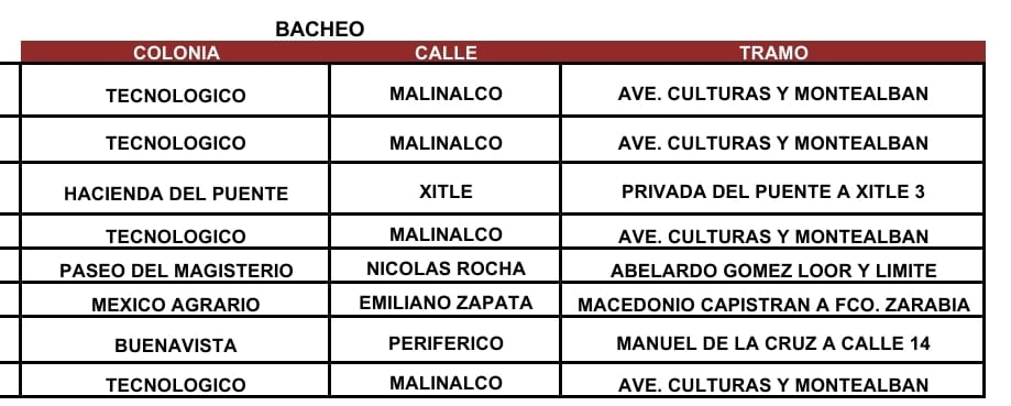 Este lunes 18 de agosto el Gobierno de Beto Granados continúa trabajando para acabar con los baches que gobiernos pasados heredaron.