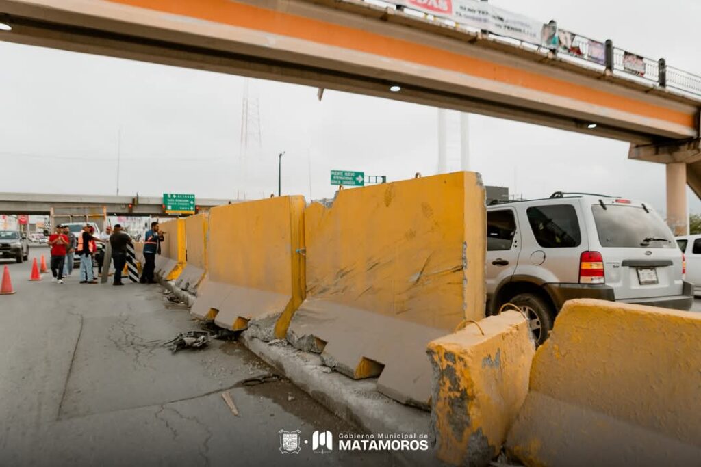 H. Matamoros, Tamaulipas.- Por instrucciones del alcalde Beto Granados, el Gobierno Municipal de Matamoros llevó a cabo maniobras de reacomodo de muros de contención en la avenida Pedro Cárdenas, luego de un accidente vial provocado por la conducción bajo los efectos del alcohol.