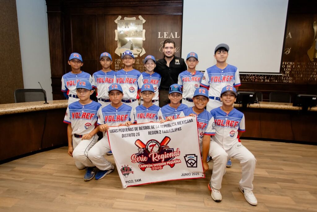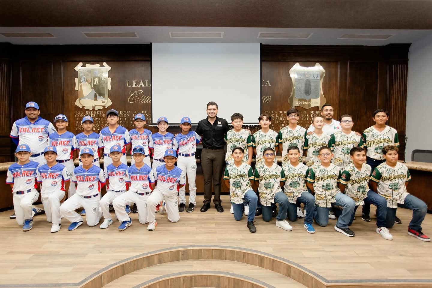 H. Matamoros, Tamaulipas.- El alcalde, Beto Granados recibió en Palacio Municipal a los equipos de la Liga Pequeña de Béisbol Villa del Refugio A.C. y la Liga Pequeña de Béisbol Matamoros A.C., quienes se preparan con entusiasmo y disciplina para representar a nuestra ciudad en competencias estatales y nacionales.