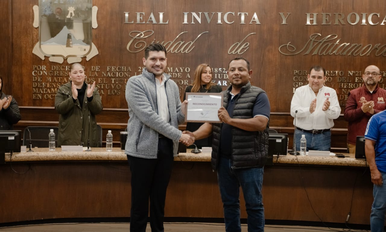 H. Matamoros, Tamaulipas.- El Republicano Ayuntamiento de Matamoros celebró la quinta sesión ordinaria este pasado martes, la cual fue presidida por el alcalde Alberto Granados Fávila, quien reconoció el valor de la honestidad de un grupo de fajineros de la localidad.