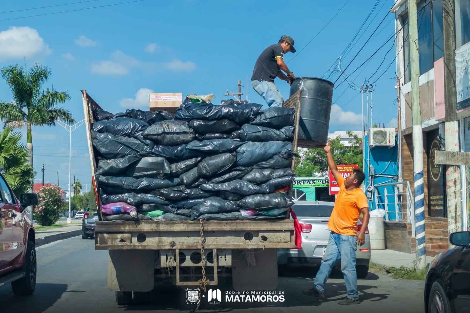 Desde tempranas horas, los equipos de Limpieza Pública recorren distintas colonias, avenidas y espacios de Matamoros, realizando trabajos de recolección de basura, barrido manual y atención a puntos prioritarios.