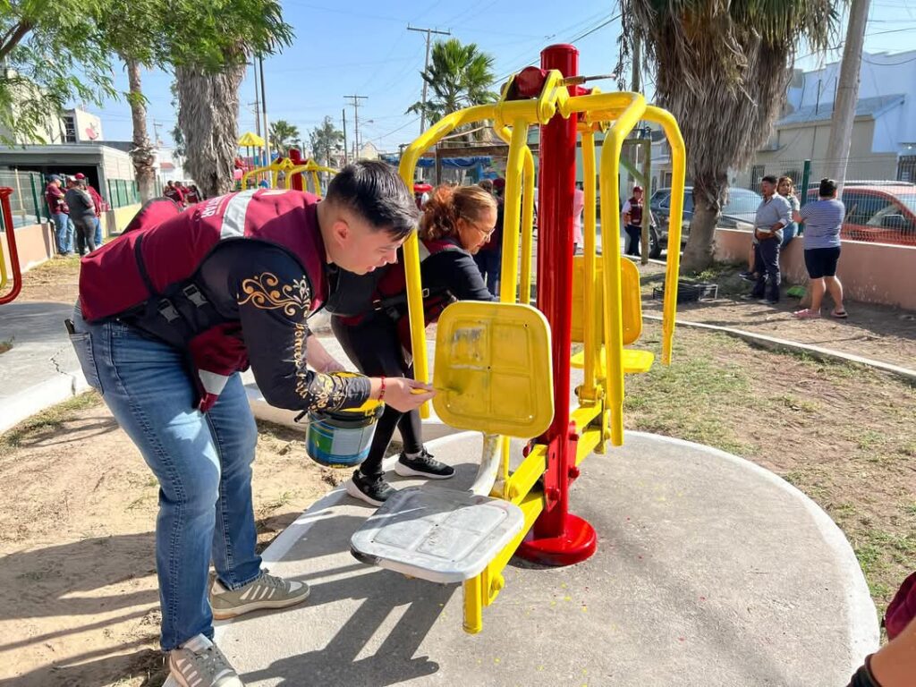 H. Matamoros, Tam.- La Secretaría de Bienestar Social del Gobierno Municipal de Matamoros, por instrucciones del alcalde Beto Granados, llevó a cabo la rehabilitación del área verde en el Fraccionamiento Hacienda del Puente.