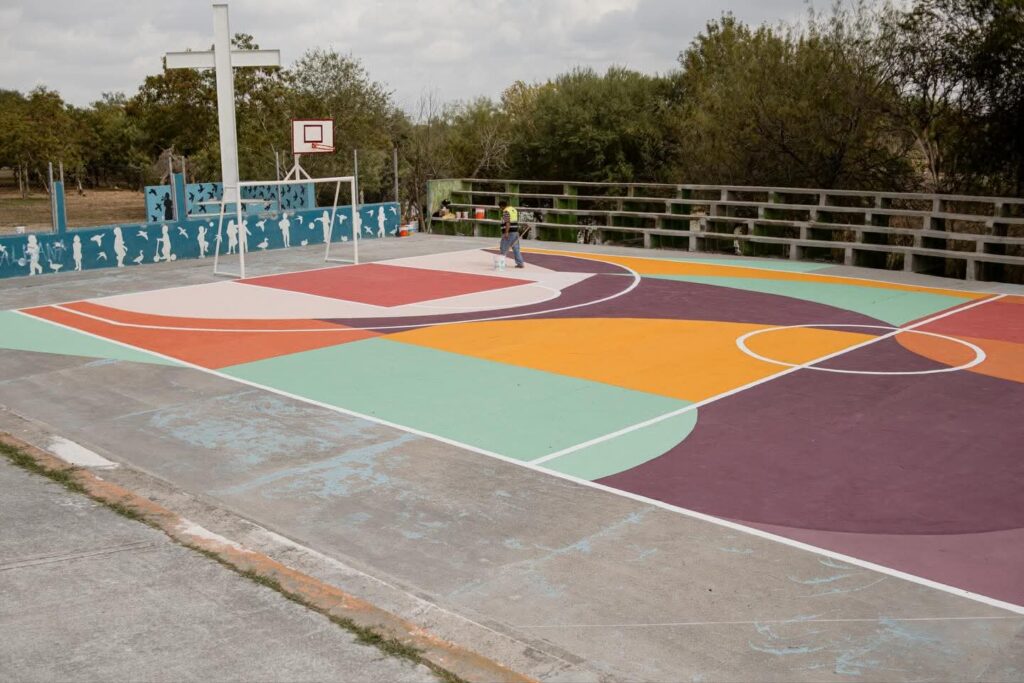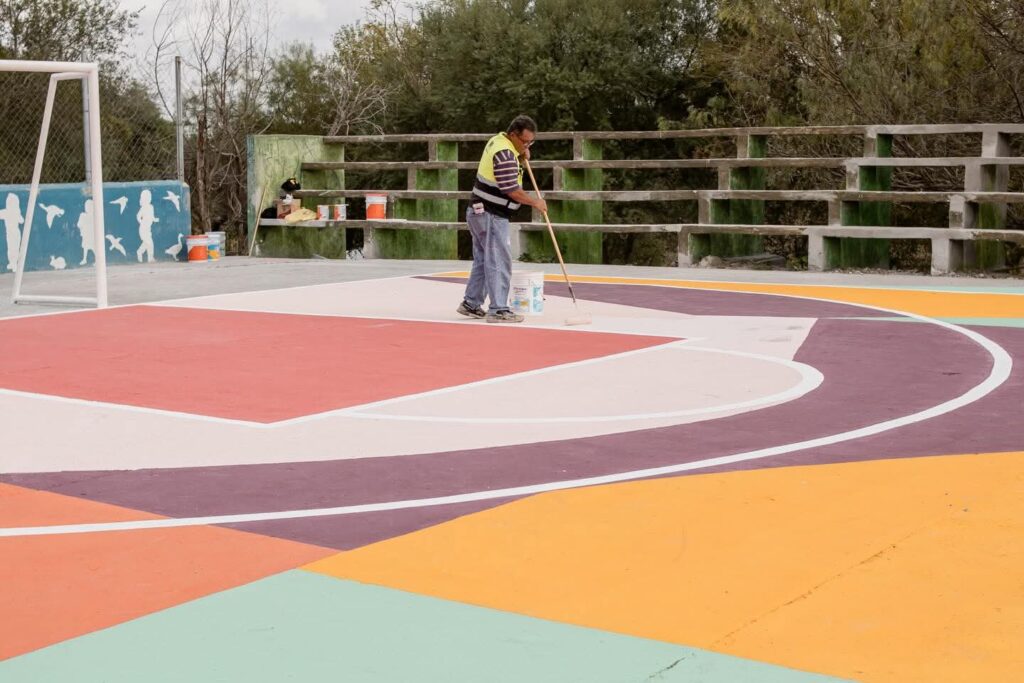 Como parte de estas mejoras, se están renovando las canchas deportivas, aplicando trabajos de pintura y colocando nueva iluminación para ofrecer áreas más seguras, modernas y funcionales para todos.