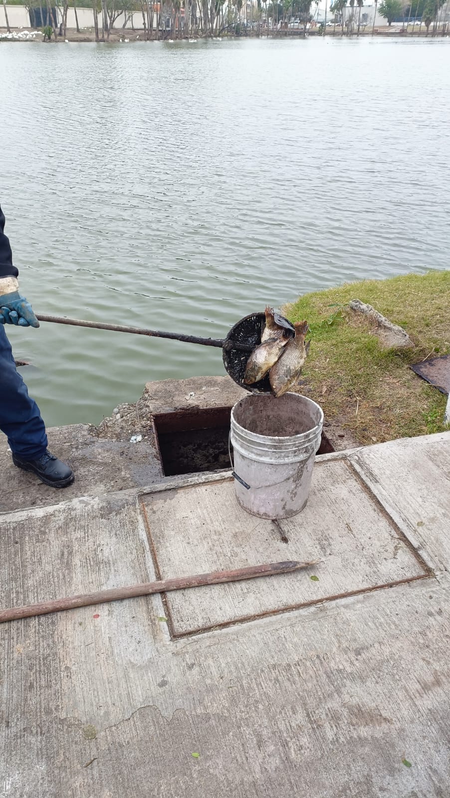 Omar Garza, director de Medio Ambiente y Desarrollo Sustentable, informó que las acciones se realizaron en conjunto con el personal encargado del Laguito y la Junta de Aguas y Drenaje, quienes llevaron a cabo la recolección y disposición adecuada de los peces muertos.