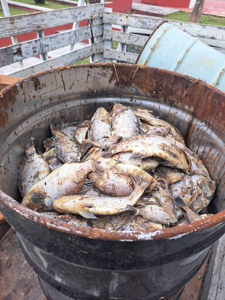 Matamoros, Tamaulipas.– En respuesta a los efectos de las bajas temperaturas registradas en la ciudad, el gobierno municipal, encabezado por el alcalde Alberto Granados, implementó un operativo especial para el retiro de peces muertos en el Laguito, donde aproximadamente 200 ejemplares de tilapia azul (Oreochromis aureus) fueron encontrados sin vida.