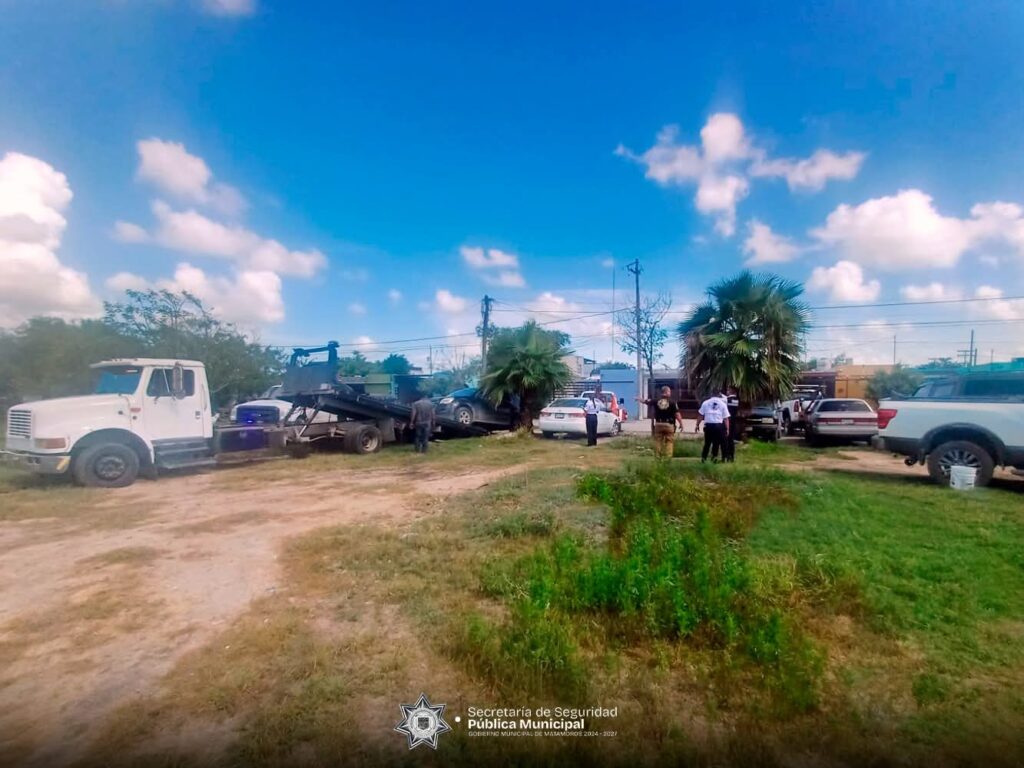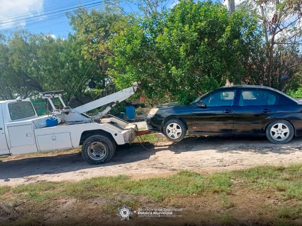 H. Matamoros, Tamaulipas.- Como parte de las acciones para garantizar el orden urbano y responder a las inquietudes de la ciudadanía, la dirección de tránsito y vialidad llevó a cabo un operativo en el fraccionamiento Lomas de San Juan, donde se procedió al retiro de doce vehículos que se encontraban estacionados de forma irregular en un área verde.