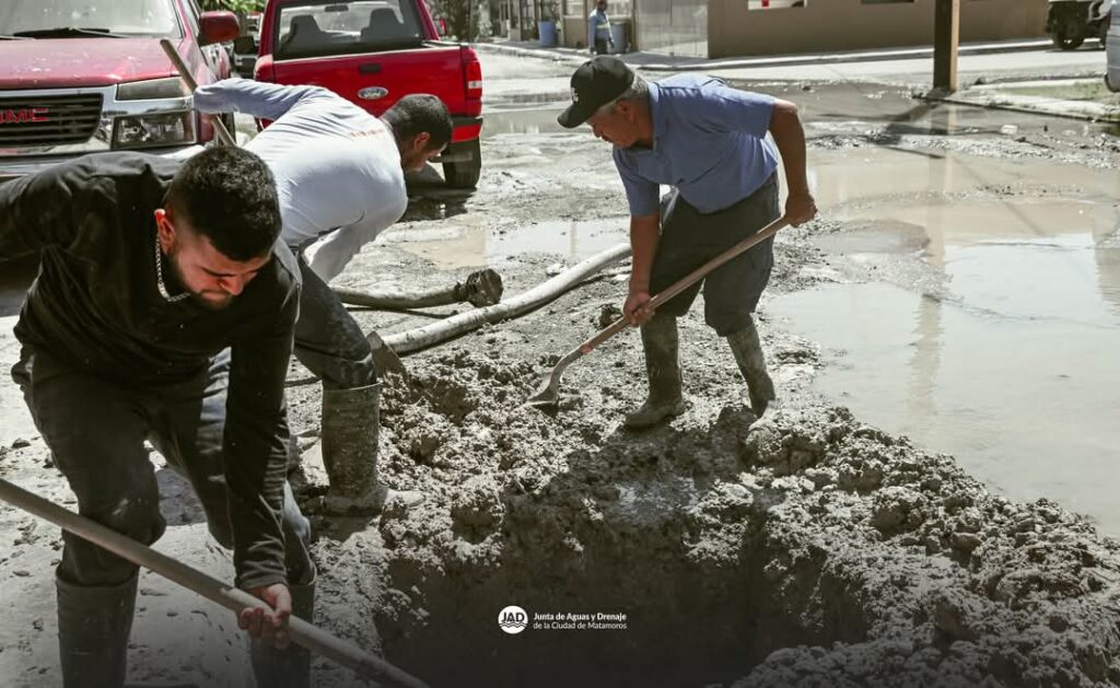 Los trabajos fueron realizados por personal de la Junta de Aguas y Drenaje de Matamoros en la intersección de las calles 18 de Julio y De Chapultepec, donde se detectó la avería que afectaba el suministro del sector.