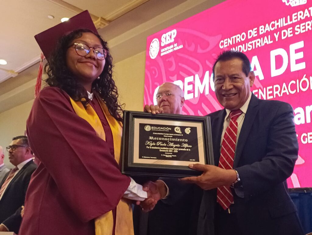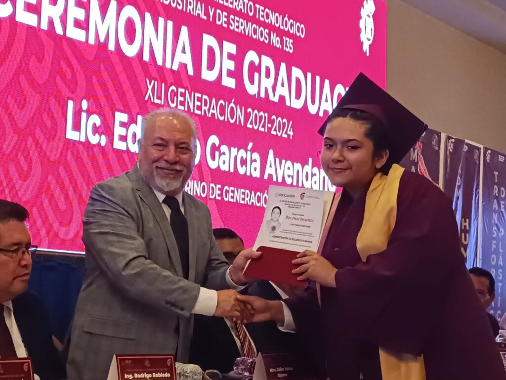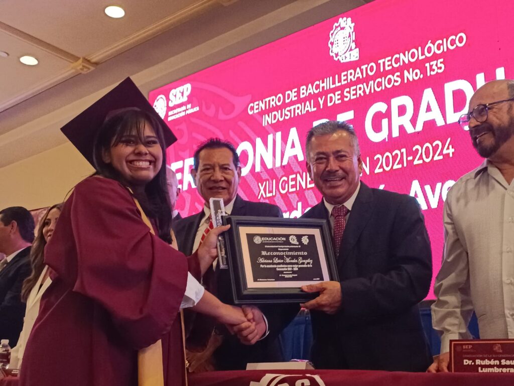 Con la entrega de medallas y diplomas a los estudiantes de mejor promedio de la generación 2021 – 2024, fue como se llevó a cabo la XLI ceremonia de graduación del del Cbtis 135 en Matamoros.