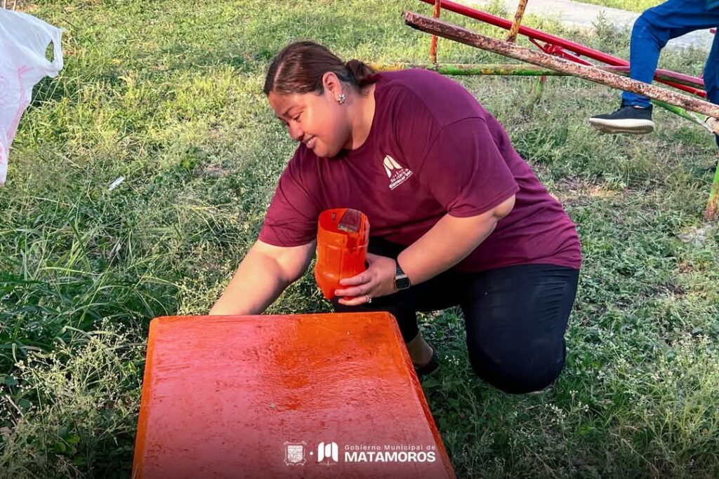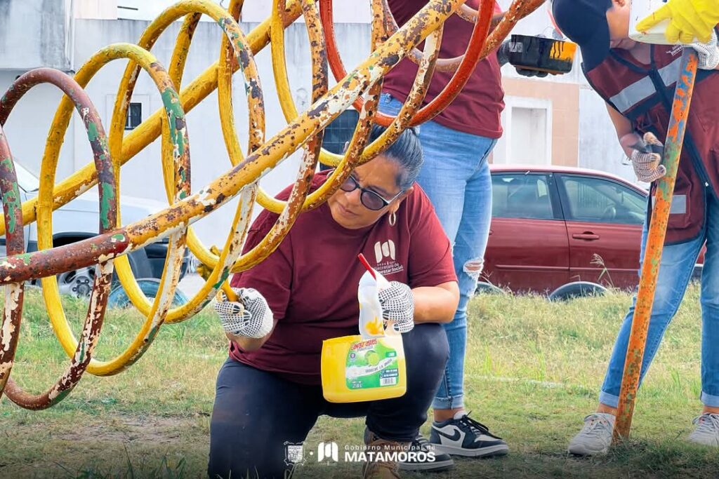 H. Matamoros, Tamaulipas.- Este sábado, el gobierno de Matamoros, bajo la dirección del presidente Beto Granados, llevó a cabo una exitosa jornada de rehabilitación de áreas verdes en la Colonia Revolución Verde. Durante esta actividad, se realizaron labores de limpieza y reacondicionamiento de los juegos infantiles, con el objetivo de promover espacios recreativos seguros y agradables para la comunidad.