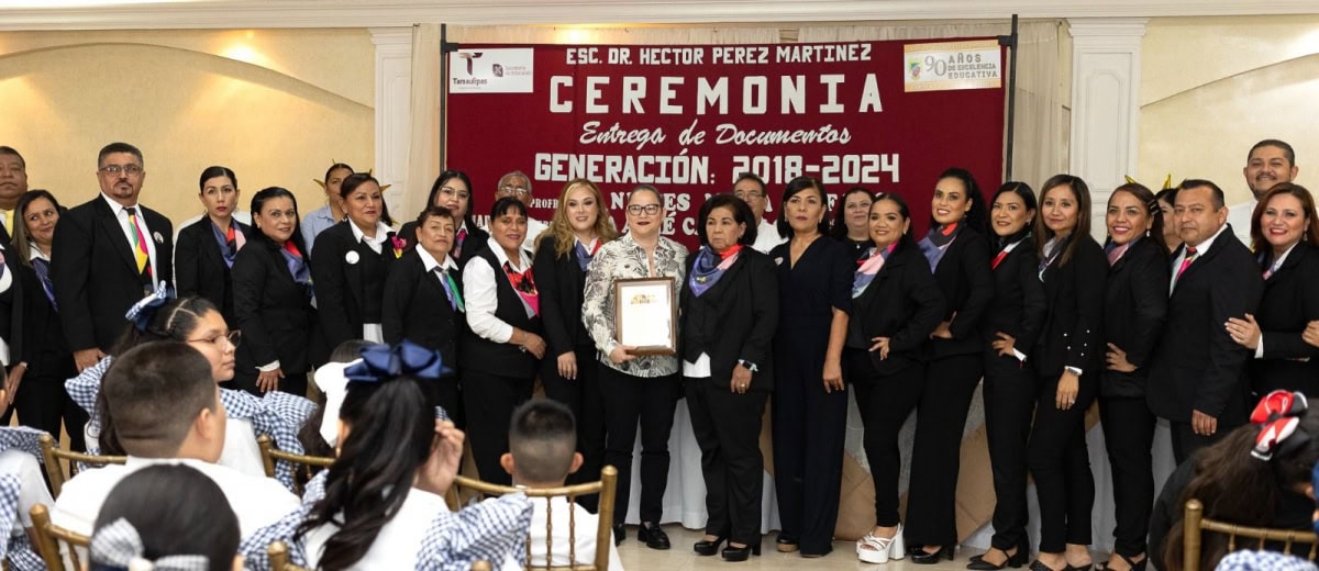 Durante la graduación de la escuela Primaria “Dr. Héctor Pérez Martínez” de Ciudad Mante, la titular de Educación en Tamaulipas, compartió el mensaje del gobernador Américo Villarreal Anaya de seguir trabajando con esfuerzo para hacer realidad las ilusiones y sueños de las próximas generaciones y para alcanzar niveles cada vez más altos de desempeño, calidad de vida y oportunidades para todos.