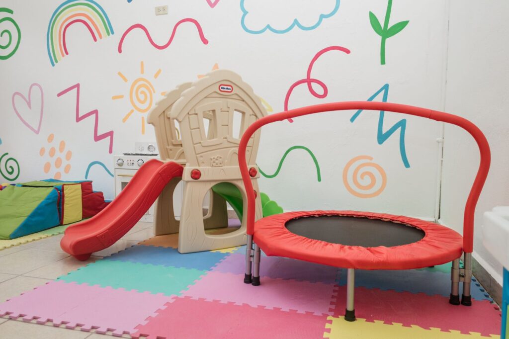 Uno de los grandes avances es la creación de un área de juegos completamente equipada, que incluye mesas, sillas y un espacio lúdico diseñado para potenciar la creatividad y el desarrollo motriz de los menores. Además, se habilitó una sala audiovisual moderna, con una televisión y todo lo necesario para que los niños puedan disfrutar de películas y momentos de relajación.