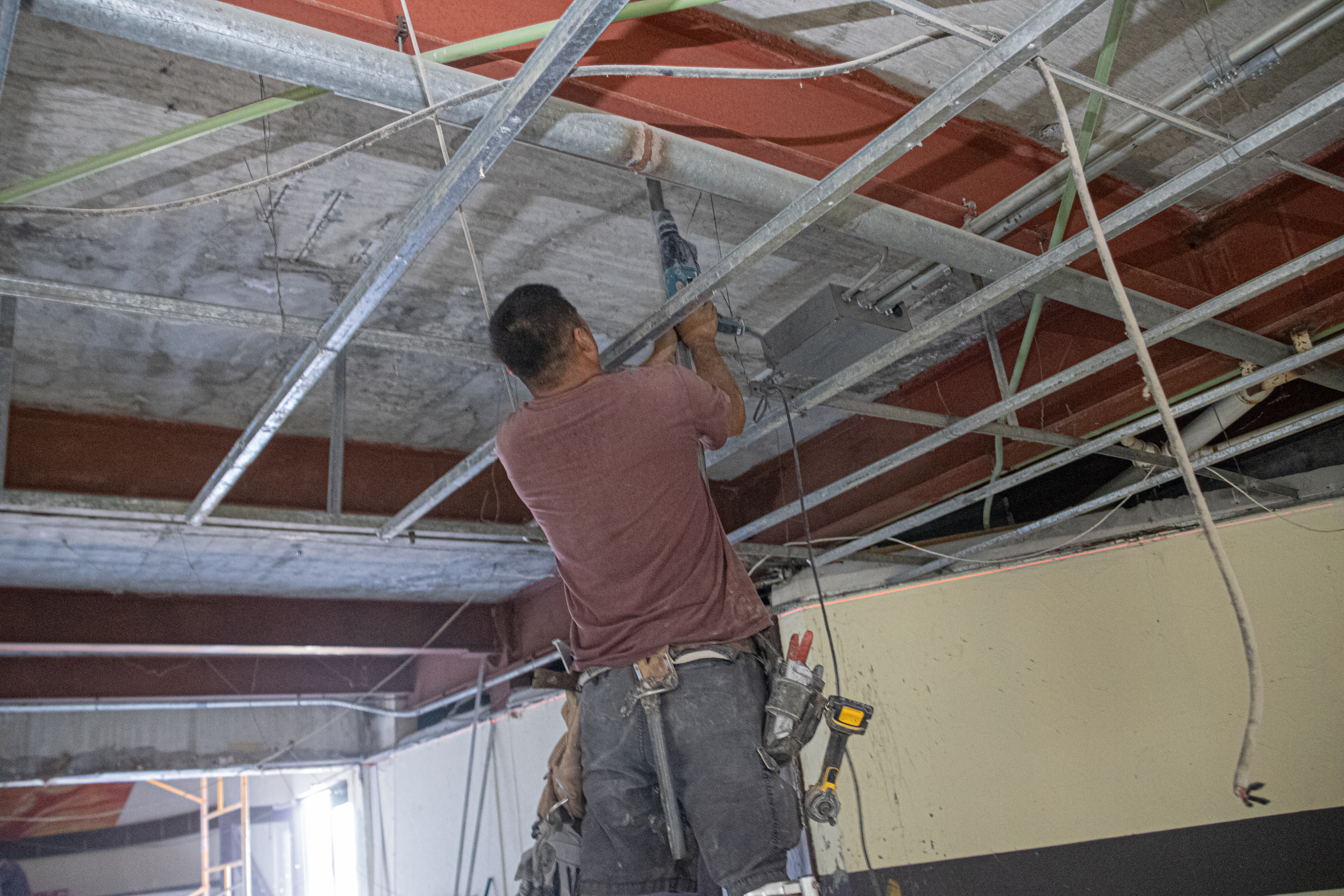 Entre los trabajos que se realizan en Mundo Nuevo destacan por el gran avance ya logrado el cambio de luminarias obsoletas por lámparas led, instalación de aires acondicionados nuevos de 25 toneladas cada uno, pintura en exterior e interior, cableado y mantenimiento total en piso y techado.