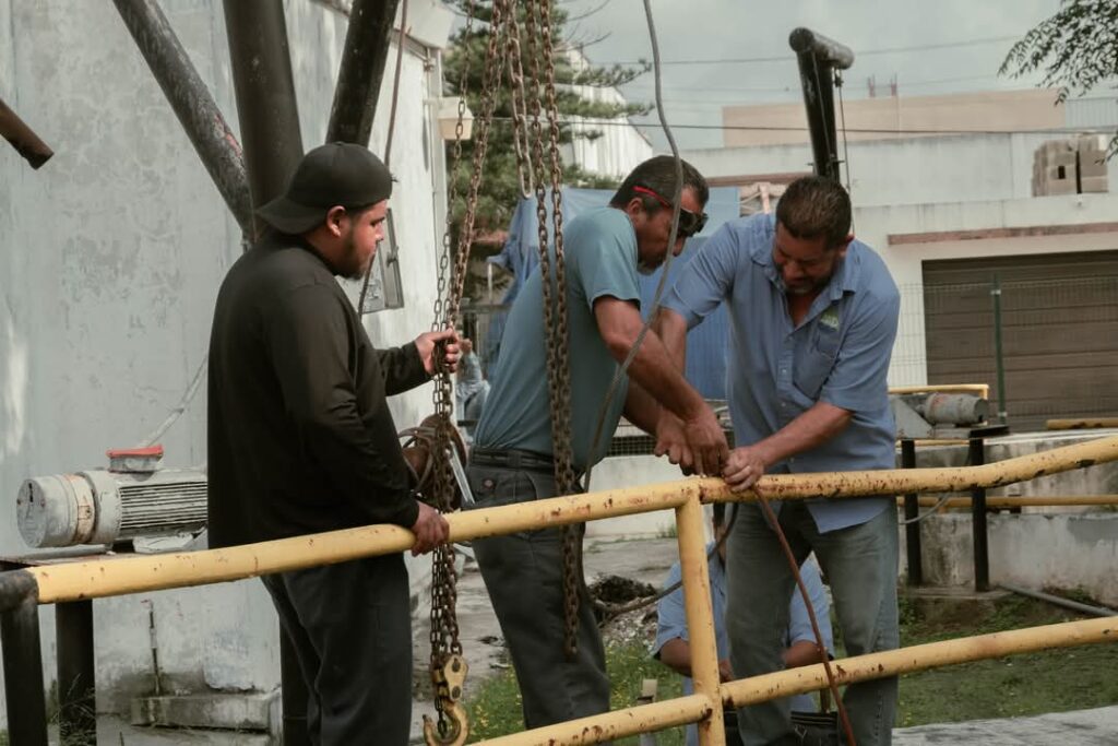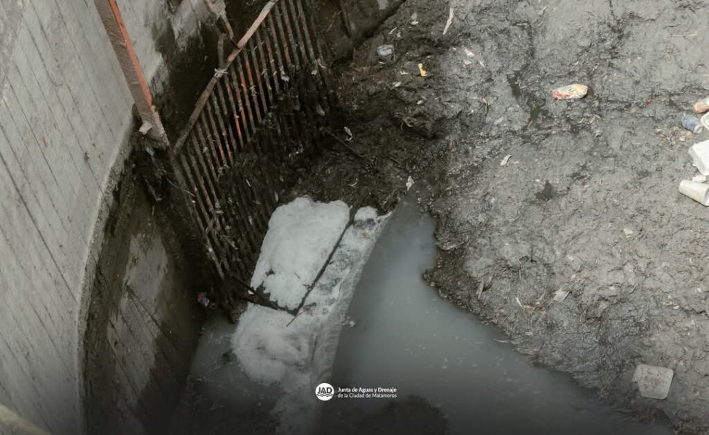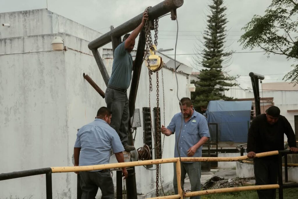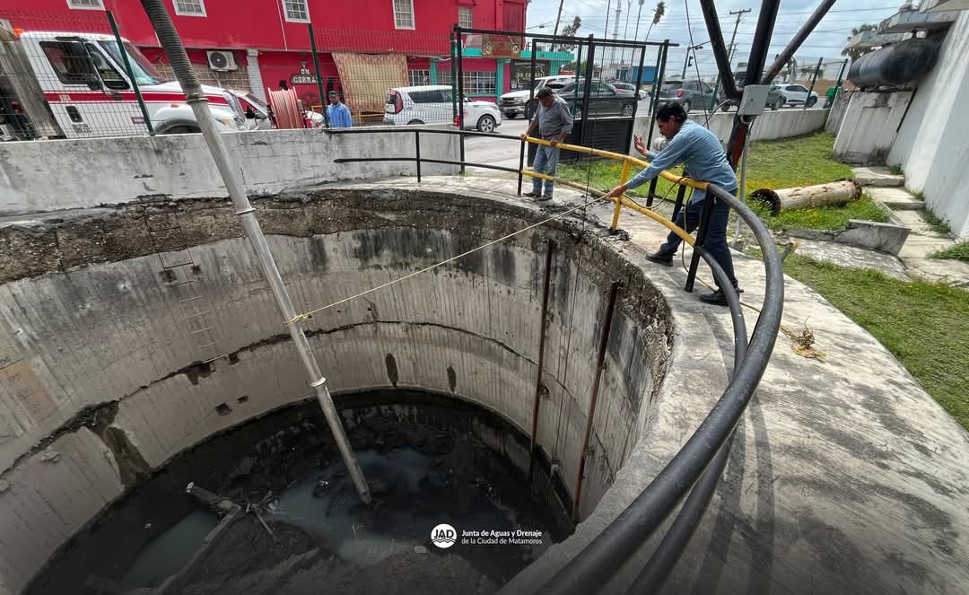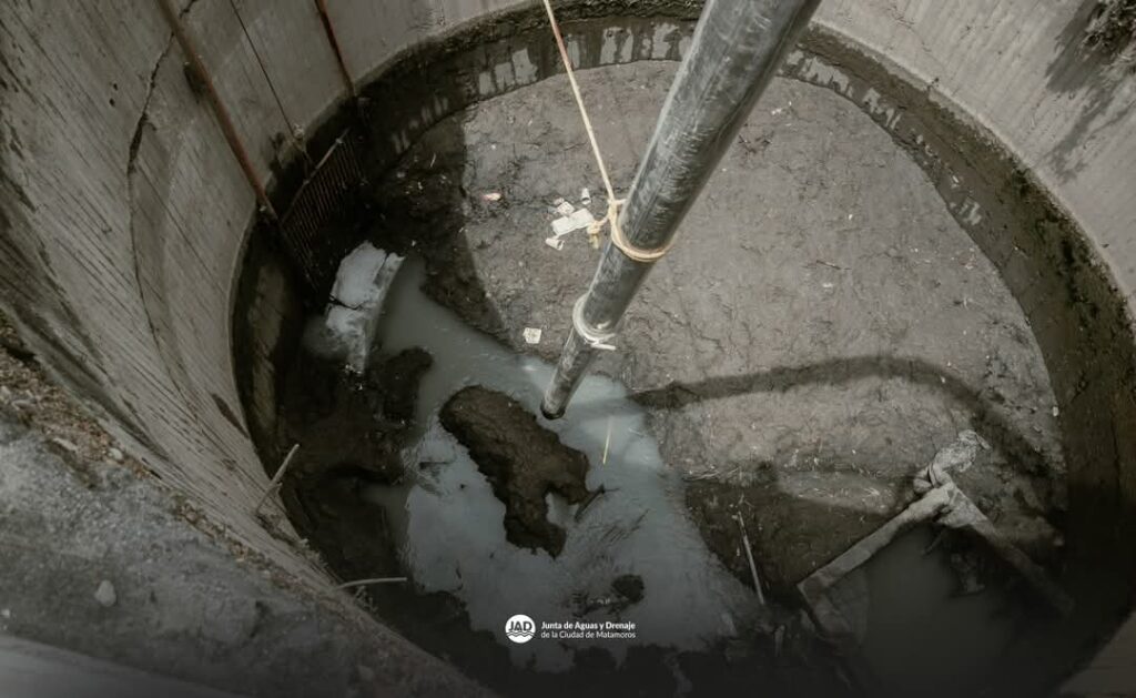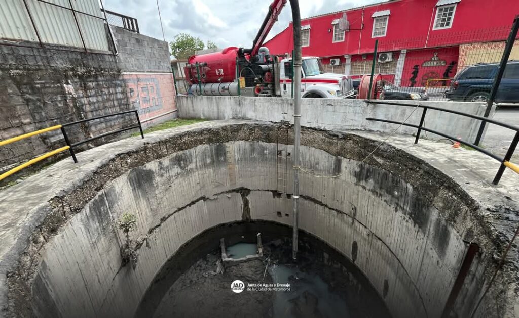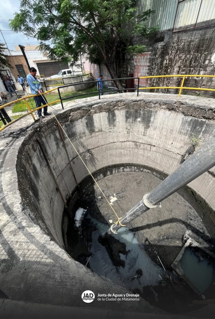 H. Matamoros, Tamaulipas.– El Gobierno Municipal, encabezado por el alcalde Beto Granados, supervisa los trabajos de mantenimiento que realiza el personal de la Junta de Aguas y Drenaje en el cárcamo ubicado en la calle Calixto Ayala de la colonia San Francisco.