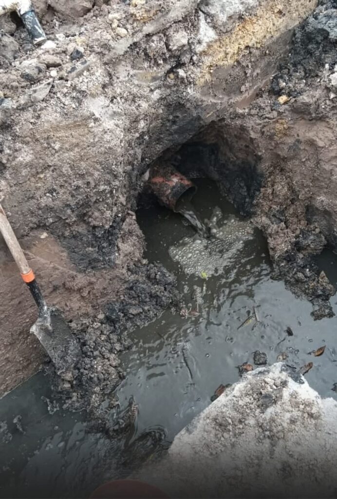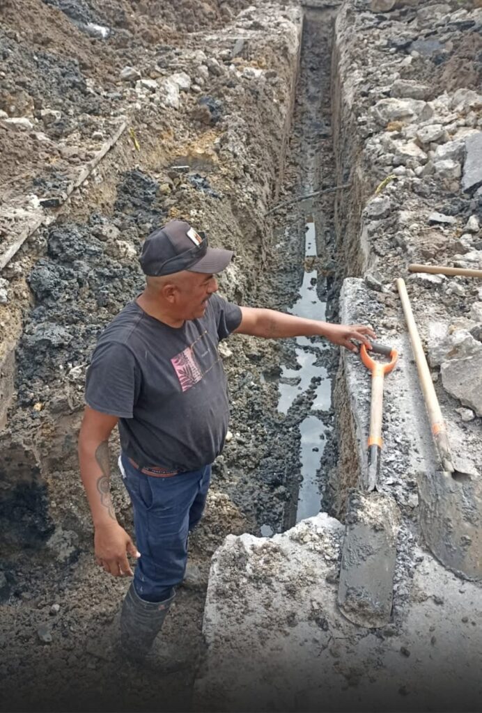 Los trabajos consisten en la reparación de una línea de drenaje de 8 pulgadas, así como de sus respectivas descargas de 6 pulgadas, con el objetivo de mejorar el sistema de alcantarillado en el sector.