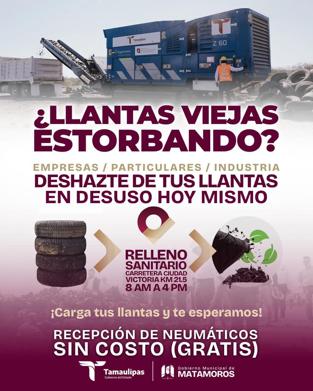 La recepción de llantas se realiza sin costo, por lo que empresas, particulares e industria pueden acercarse y participar en esta acción que promueve una ciudad más ordenada y responsable con el entorno.