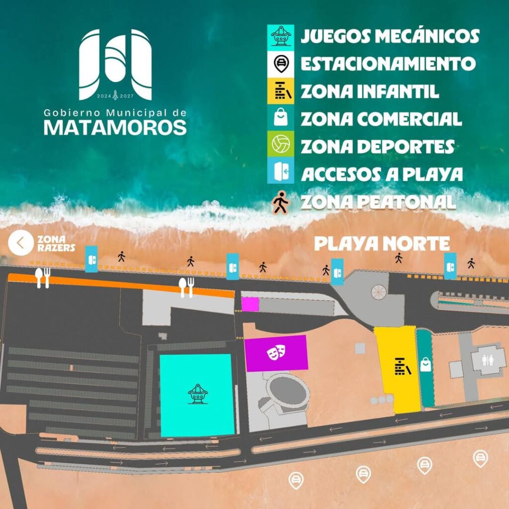 En playa norte habrá juegos mecánicos, estacionamiento, zona infantil, zona comercial, deportiva, acceso a la playa y zona peatonal; en playa sur estarán colocados los escenarios, concha acústica, restaurantes, módulo del niño perdido y área S.O.S. (protección civil y seguridad pública), además de ser área libre de vidrio.
