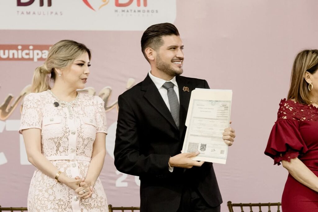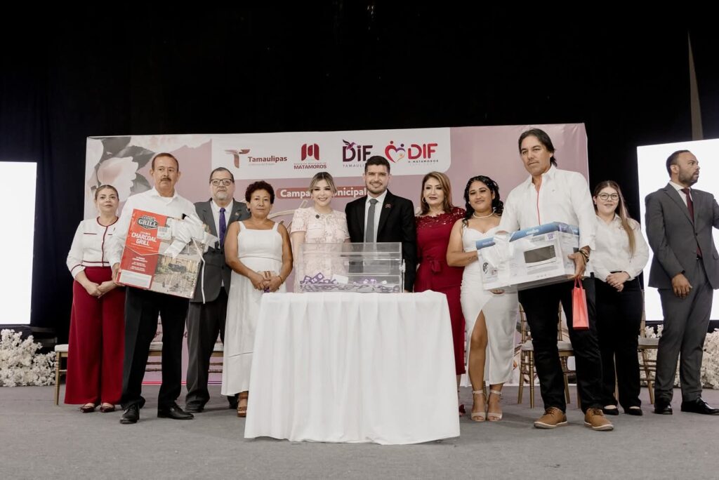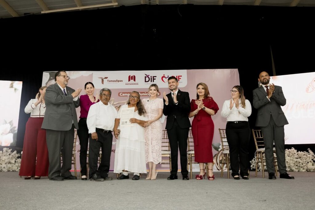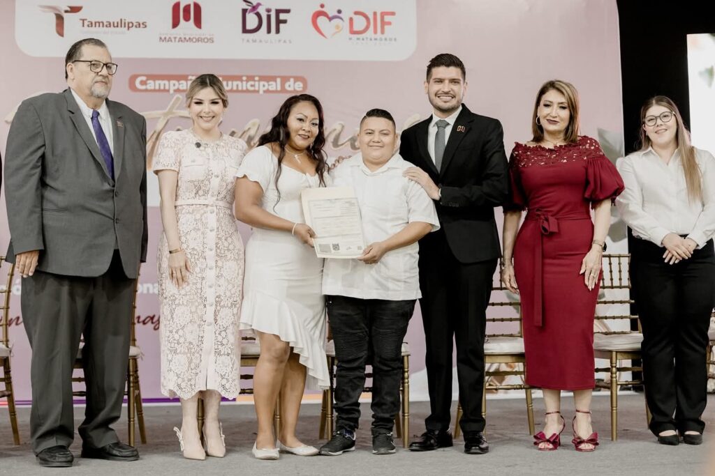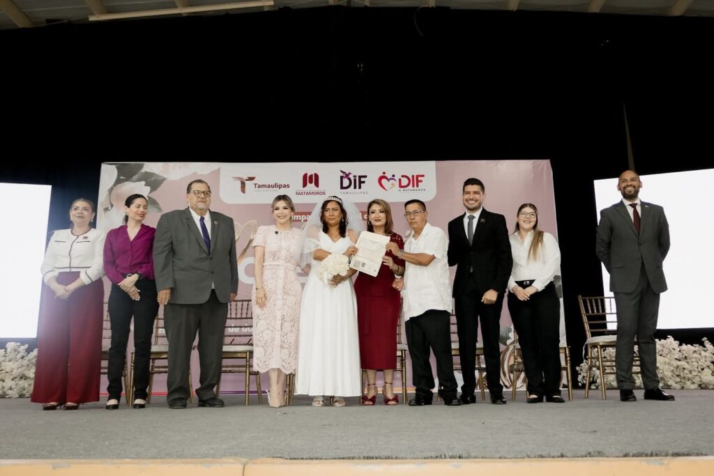 H. Matamoros, Tamaulipas.- Gracias a la coordinación entre el Gobierno del Estado, el Gobierno Municipal y el Sistema DIF Matamoros, presidido por Anita de Granados, quien estuvo acompañada por el alcalde, Beto Granados, cientos de parejas formalizaron su unión con certeza jurídica, en un ambiente lleno de alegría y celebración.