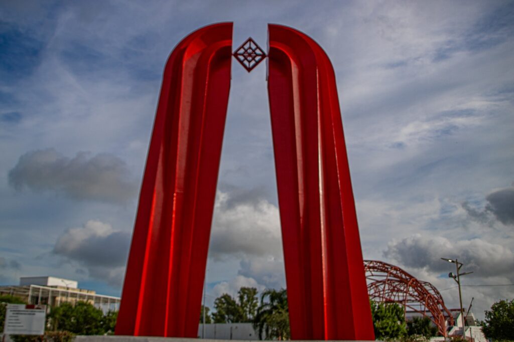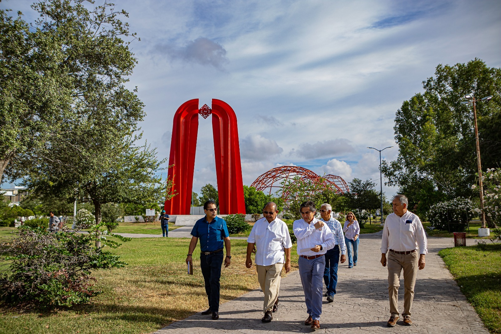 Durante la gira de trabajo que realizó para supervisar avances en obras de pavimentación, el Presidente Municipal de Matamoros también visitó el Parque Olímpico, para atestiguar la terminación de las acciones de restauración realizadas a la escultura denominada “Puerta México”.