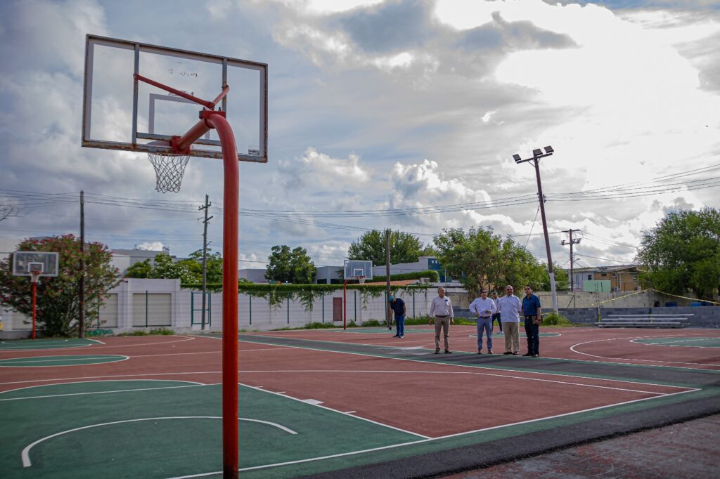 Luego de supervisar la conclusión de los trabajos realizados a la “Puerta México”, el Alcalde Sauceda Lumbreras, acompañado del Secretario de Desarrollo Urbano y Ecología, Samuel Vega García, visitó las canchas de la 18, en donde se realizan trabajos de rehabilitación.