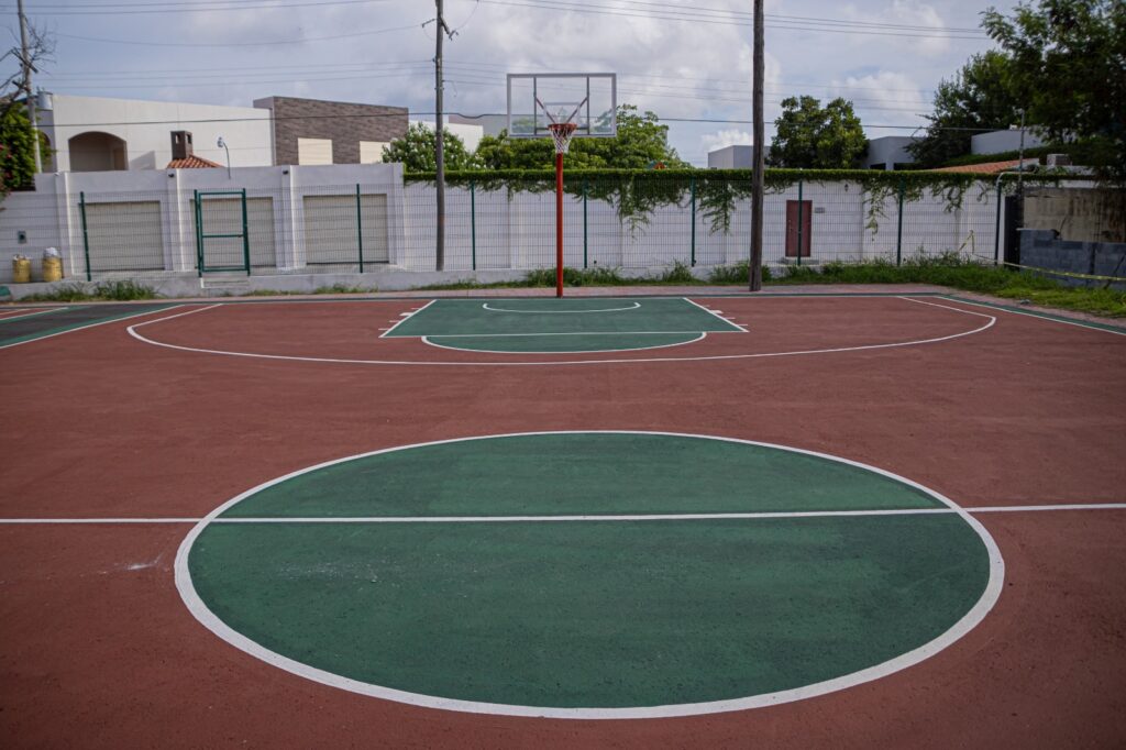 Ese espacio en donde los jóvenes realizan actividades deportivas, principalmente de basquetbol es rehabilitado con colocación de carpeta asfáltica, aplicación de pintura en área de canchas, se repara su instalación eléctrica y se colocan reflectores.