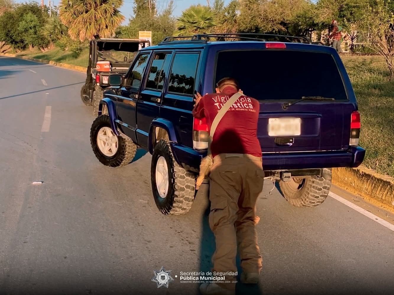 H. Matamoros, Tamaulipas.- Elementos de la Vigilancia Turística, adscritos a la Secretaría de Seguridad Pública Municipal, brindaron apoyo oportuno a un conductor que sufrió fallas mecánicas en su vehículo. Gracias a su pronta actuación, se garantizó la seguridad del automovilista, así como la de los demás conductores y peatones que transitaban por la zona.